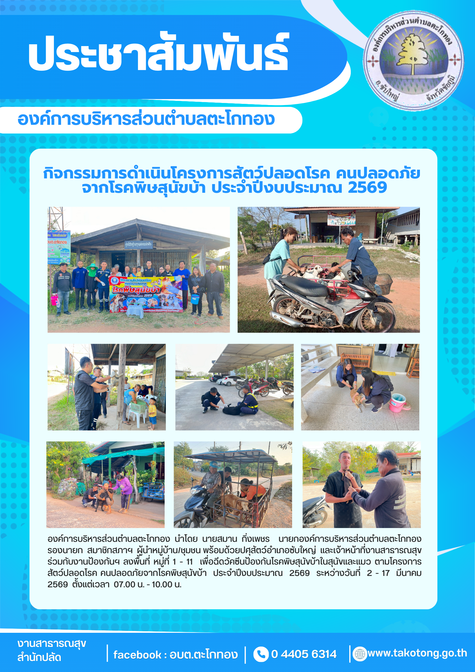 โครงการสัตว์ปลอดโรค คนปลอดภัยจากโรคพิษสุนัขบ้า ประจำปีงบประมาณ 2569