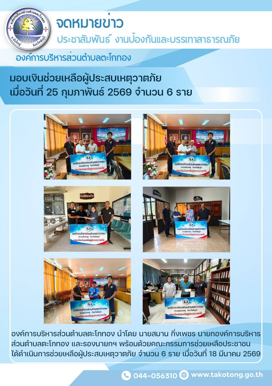 มอบเงินช่วยเหลือผู้ประสบเหตุวาตภัย จำนวน 6 ราย